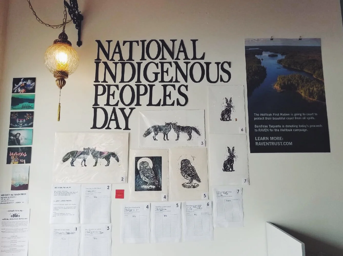June 21st is National Indigenous Peoples Day, and we're marking it with a fundraiser and art show at the restaurant. Come by at any point on June 21st, and 100% of the profits from your meal will be donated to RAVEN Trust in support of the Heiltsuk First Nation. We'll be accepting donations after June 21st as well, so if you can't make it in this week, there will still be an opportunity to donate through the restaurant to this and several other worthy causes.