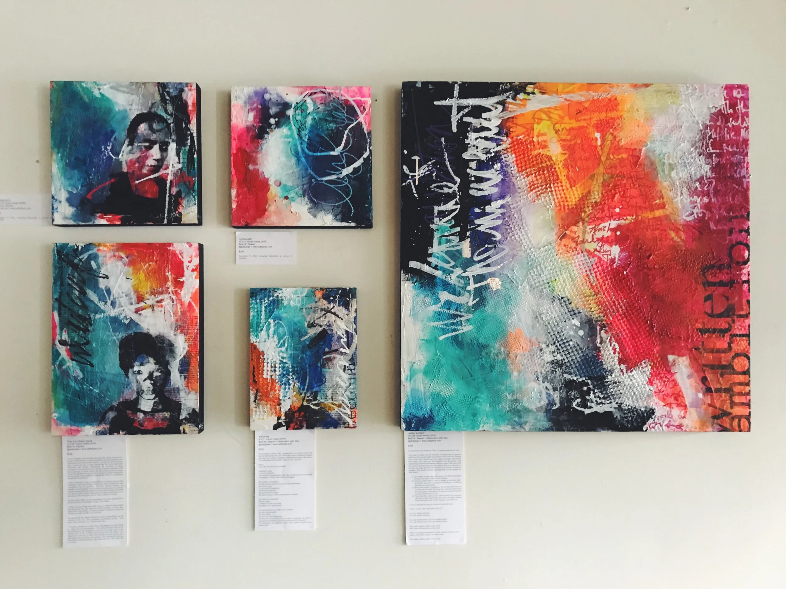 From the artist: “I am an abstract expressionist artist living in Vancouver with my three sons. I have a PhD from the Institute for Gender, Race, Sexuality and Social Justice at UBC and have been painting since 2012. My art is both emotional and political, inspired by the complex ethical and emotional landscapes of inequality. Through the aesthetics of art, I practice seeing beyond narratives of suffering and victimhood to the beautiful possibilities of humanity.”