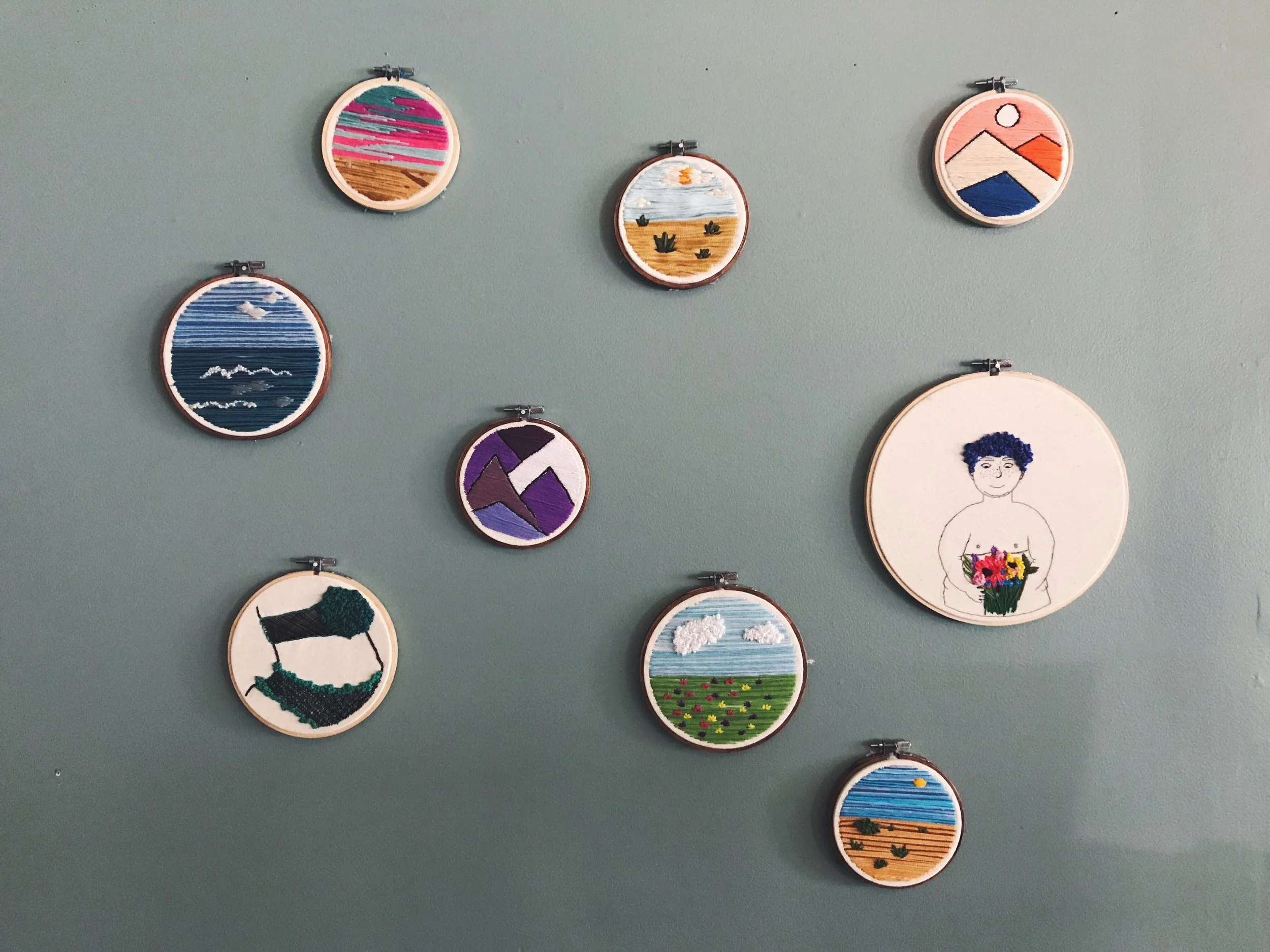From the artist: “A Salty Stitch is the beautiful project that rose through some tough dirt to get here. In late 2017, I was searching for tools to help manage my declining mental health. I needed a release for my anxiety and I was hoping that creating something with my hands would give me a sense of purpose and self. I took the name as an embracing of the fact that my wit and sass are some of my defining qualities, despite growing up being told otherwise. I presented my first batch of hoops at the Kettle Society's art show Art Against Stigma two years ago and have since opened an Etsy shop where I offer options to have custom pieces made and have had commissions from all over Canada as far as Atlanta, Georgia. My style has evolved over time and I enjoy pushing myself with new stitching techniques, adding textures but most of all using this delicate art form as a way of speaking on issues I care deeply about. I use humour or beautiful images to accompany sharp words like “BELIEVE WOMEN” “NOT YOUR HONEY” “THE FUTURE IS ACCESSIBLE” and stitch images of fat bodies and gender neutral humans showing affection for themselves and others. I stitch things that I would love to populate the walls of my home, my hope is that other do and it brings them joy every day.”