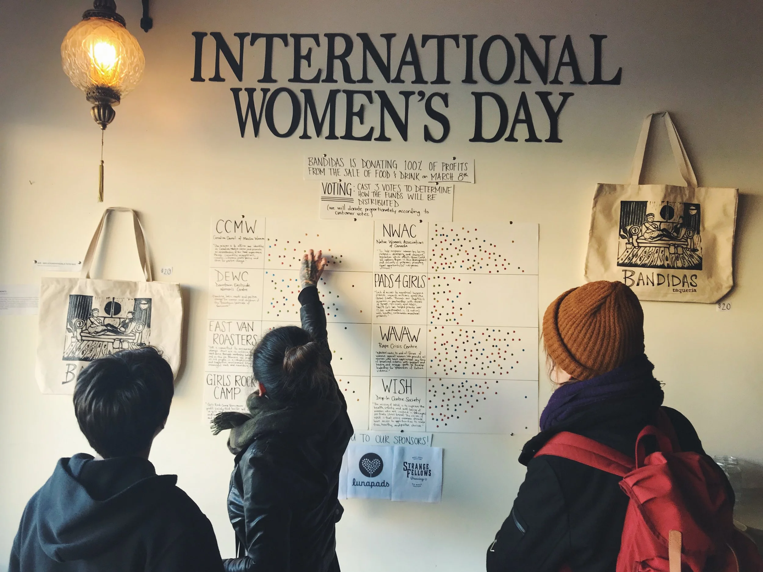 Thanks to everyone who came out to Bandidas on International Women’s Day--the lines were long and you were so very gracious! On March 8th, we donated 100% of our profits (+ additional customer donations and sponsorship from event partners) to various local and national organizations which serve women*. Our customers voted to determine how the funds would be distributed, and here are the results: